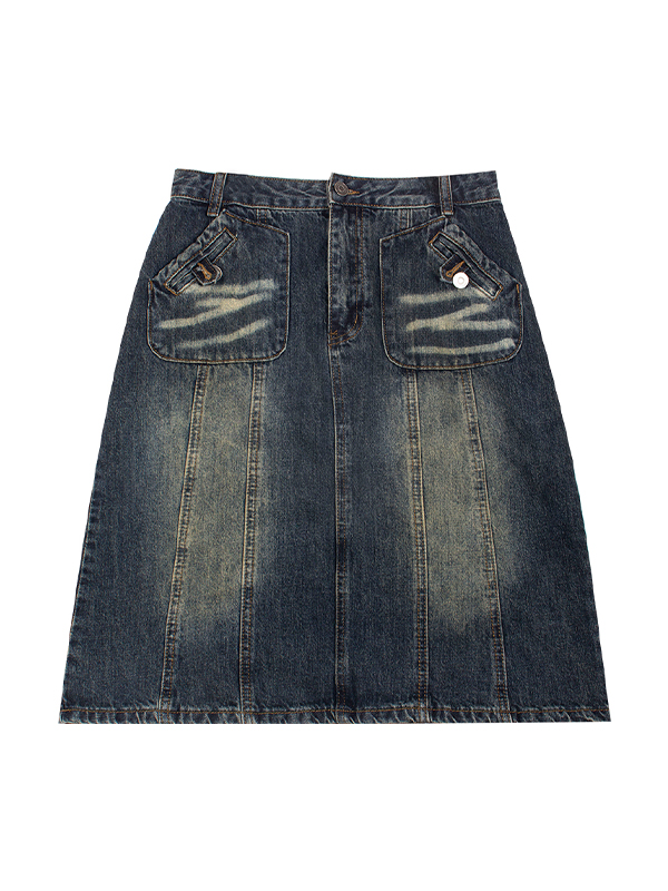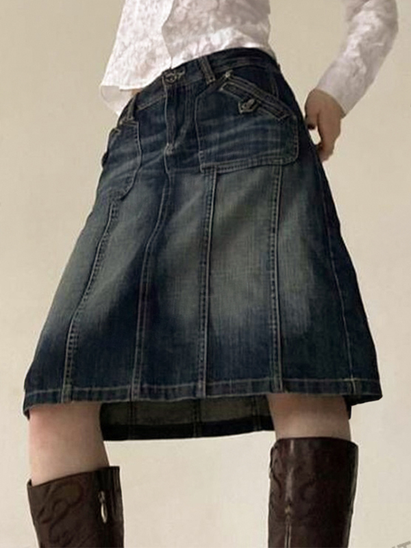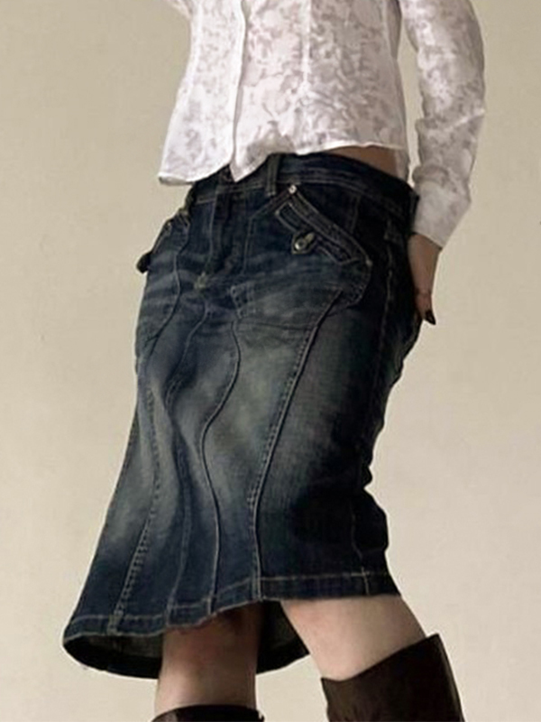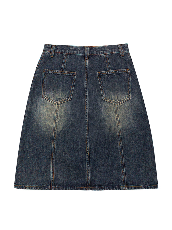 Distressed Washed Slim Straight A Line Denim skirt quantity