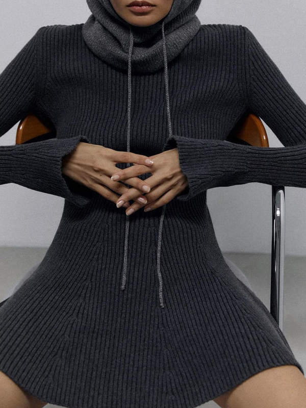 Solid High Neck Slim Knit Mini Dress
