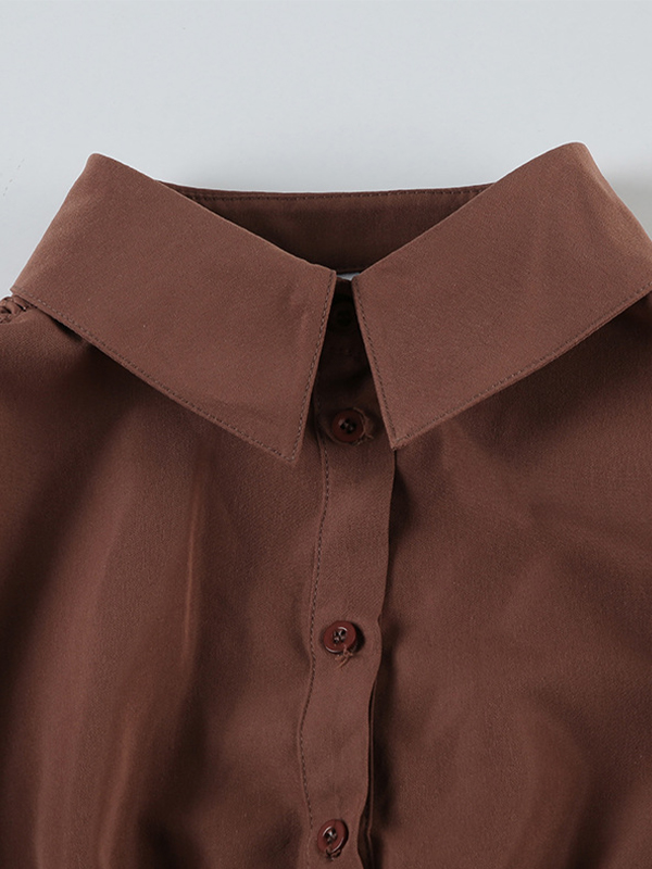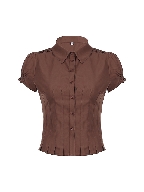 Solid Color Slim Fit Pleated Casual Short Sleeves Shirts