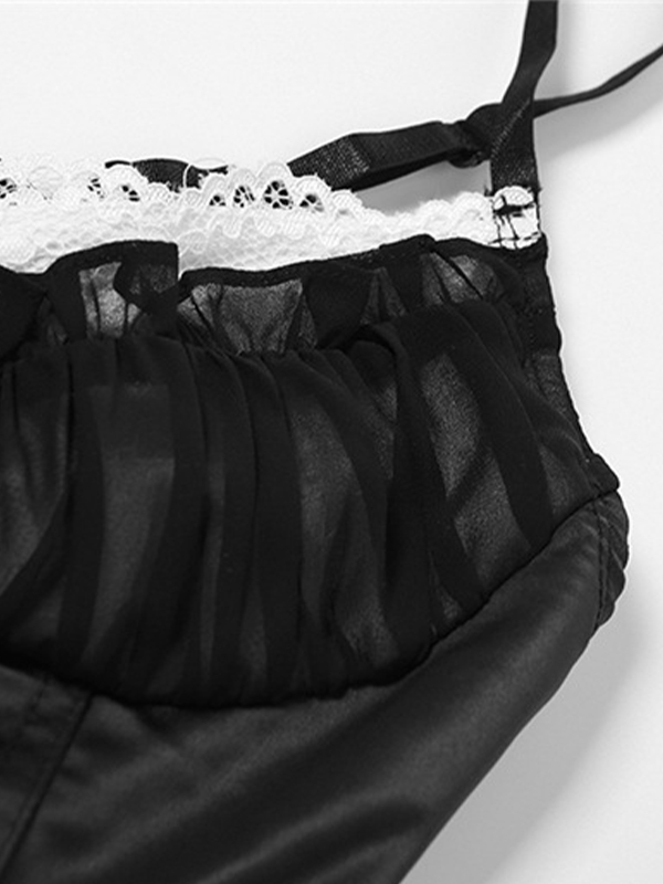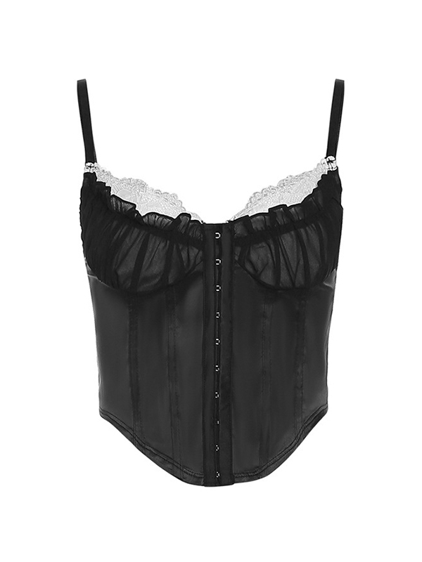 Lace Mesh Splice Breasted Irregular Hem Corset Top
