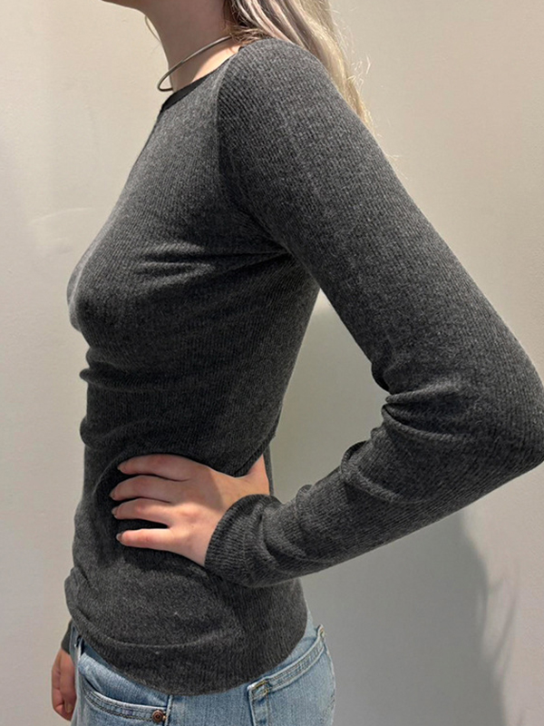Clashing One Shoulder Long Sleeve Knits