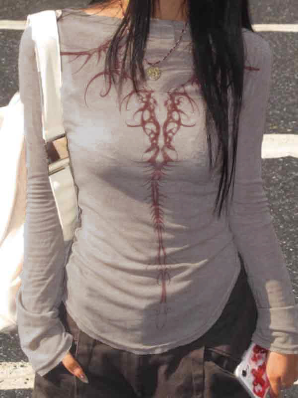 Reversible Print Square Neck Slim Long Sleeve Knit