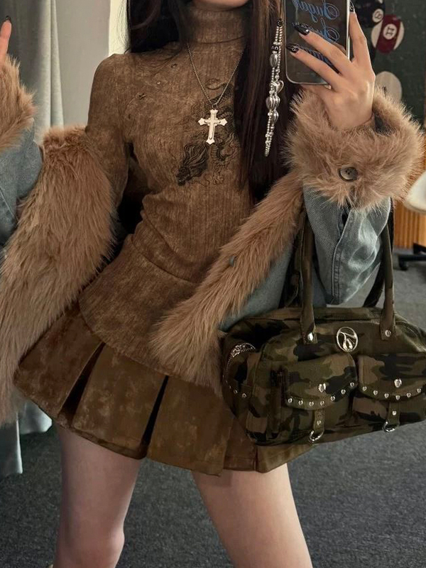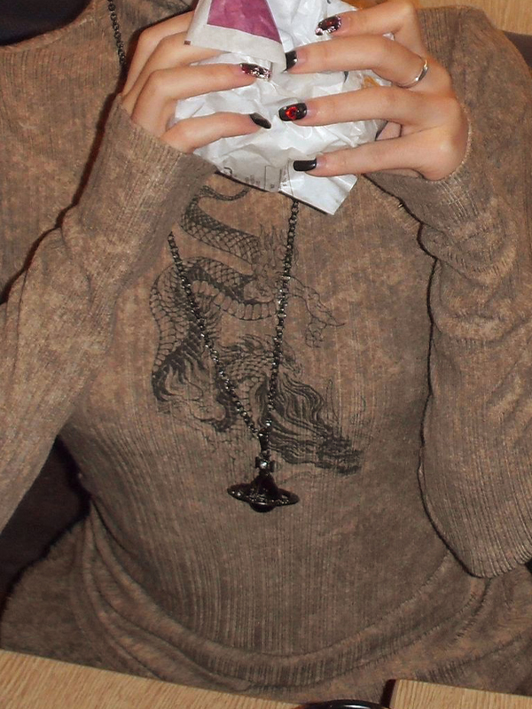 Tribal Dragon Print Studded Long Sleeve Knit