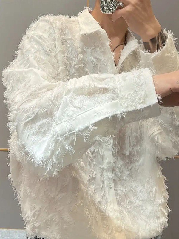 Men’s Fuzzy Long Sleeve Button Down Shirt