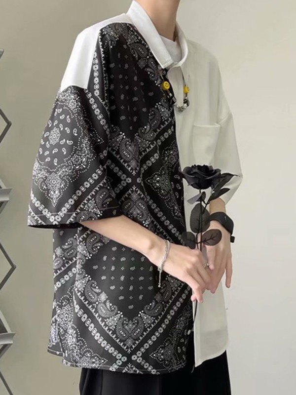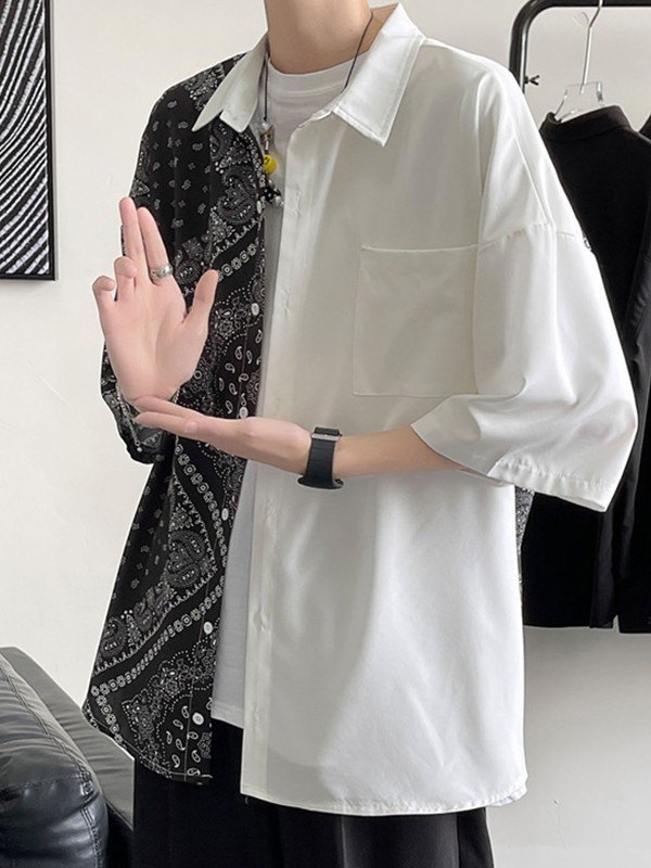 Men's Patchwork Paisley Print Pocket Shirt quantity