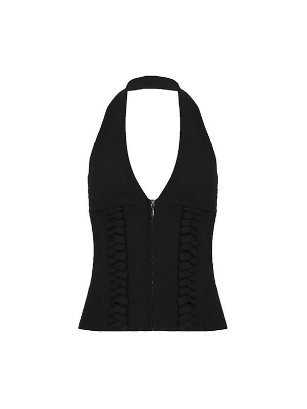 French Neck Tie Halter Vest