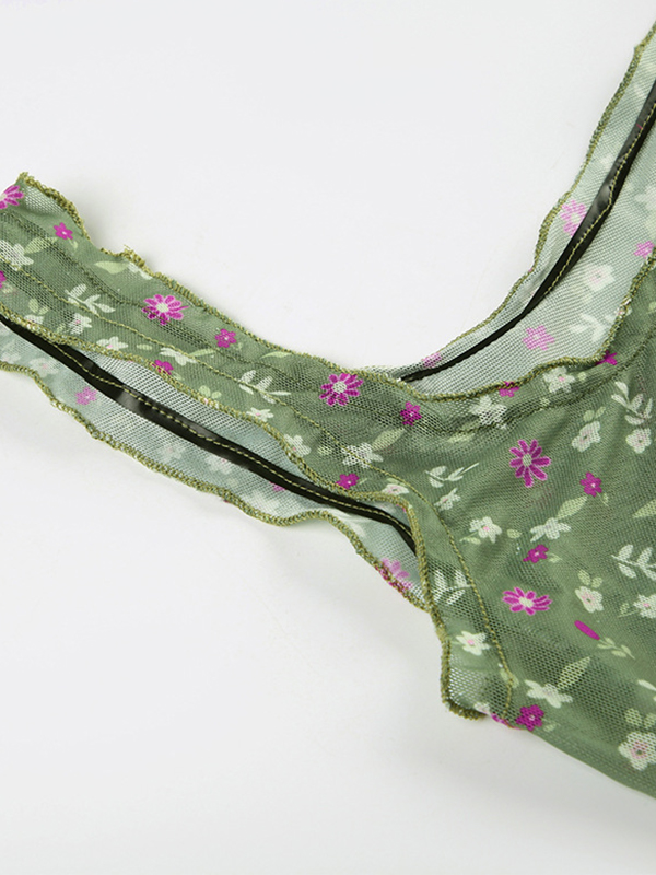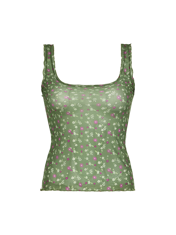 Mesh Floral See Through Square Neck Tank Top
