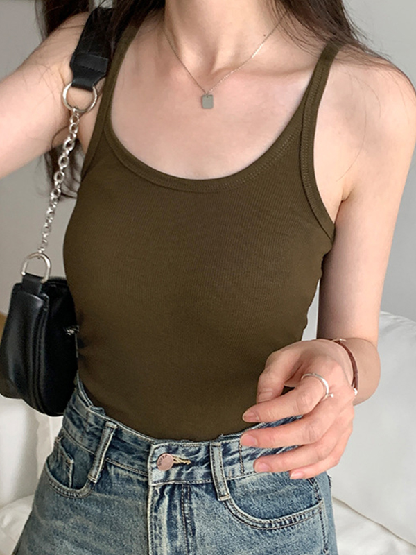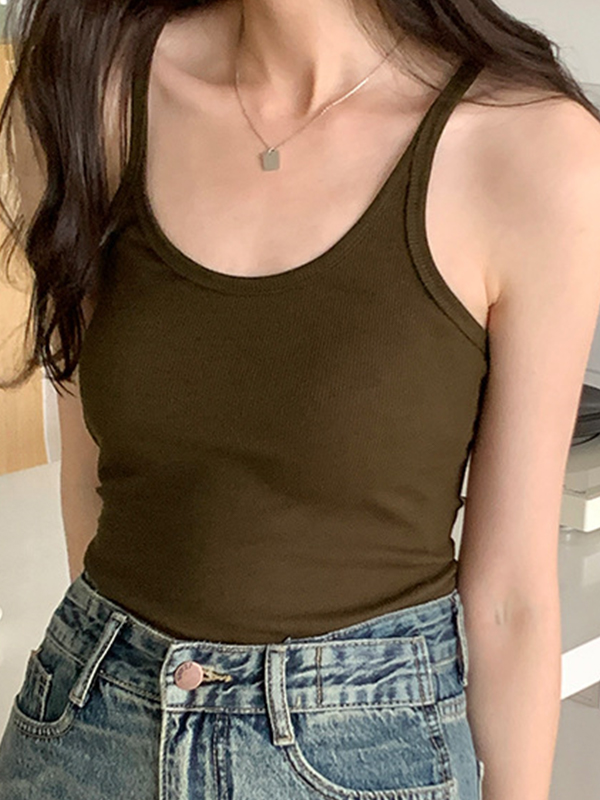 Plain High Elastic Slim Fit Cami Top
