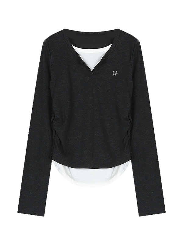 Fake Two Piece Contrast Color Long Sleeve Tee