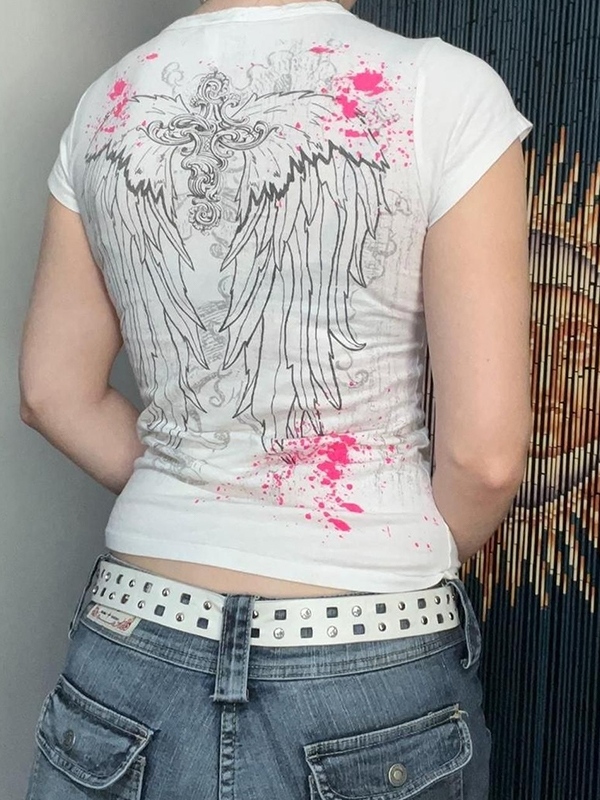Gothic Print Splash Ink Design Short Sleeve Tee