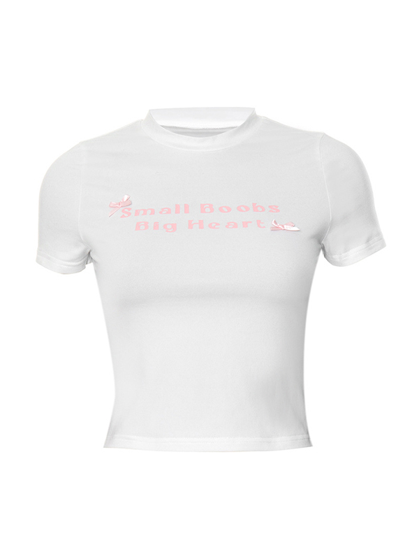 Letter Print Bow Cropped Short Sleeve Tee