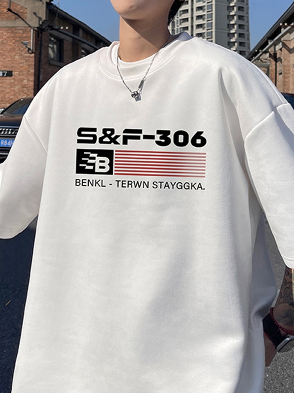 Men’s Striped Letters Oversized Short Sleeve Tee