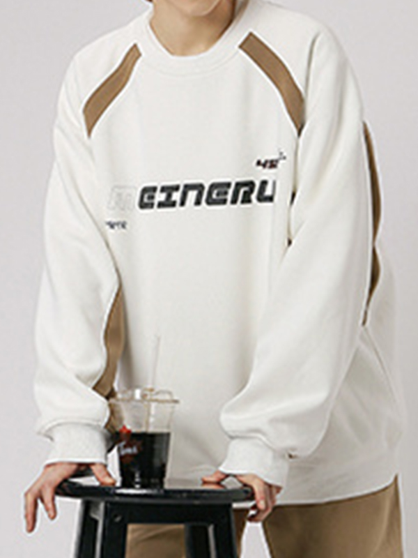 Men’s Vintage Print Patchwork Design Long Sleeve Tee