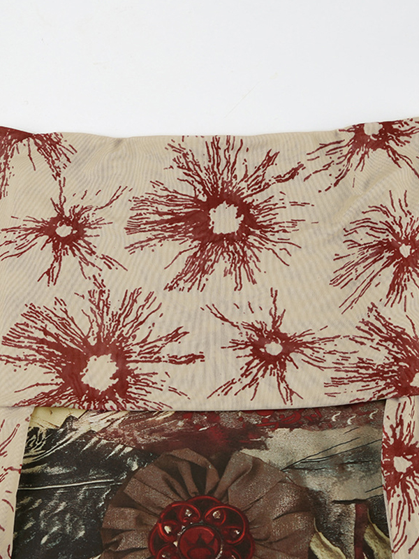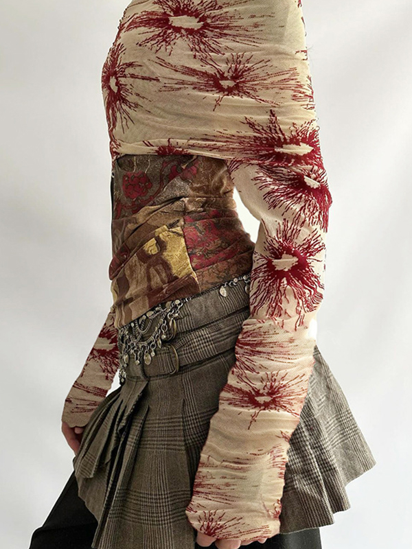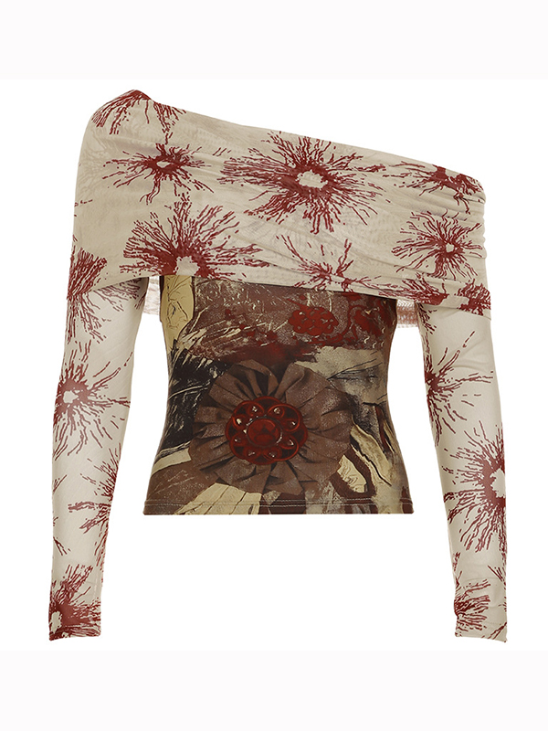 One Shoulder Mesh Splicing Long Sleeve Tee