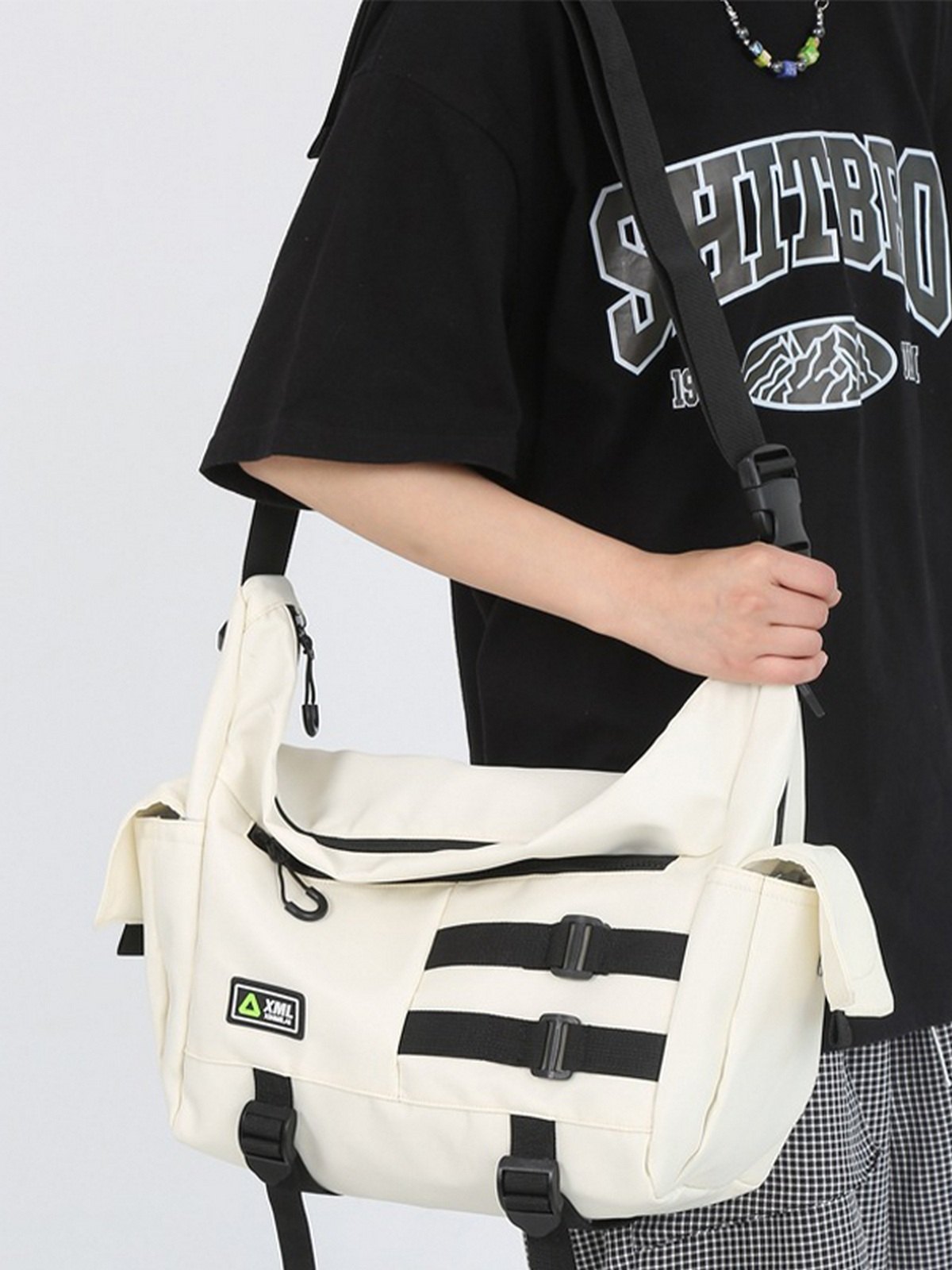 Buckle Strap Large Nylon Messenger Bag