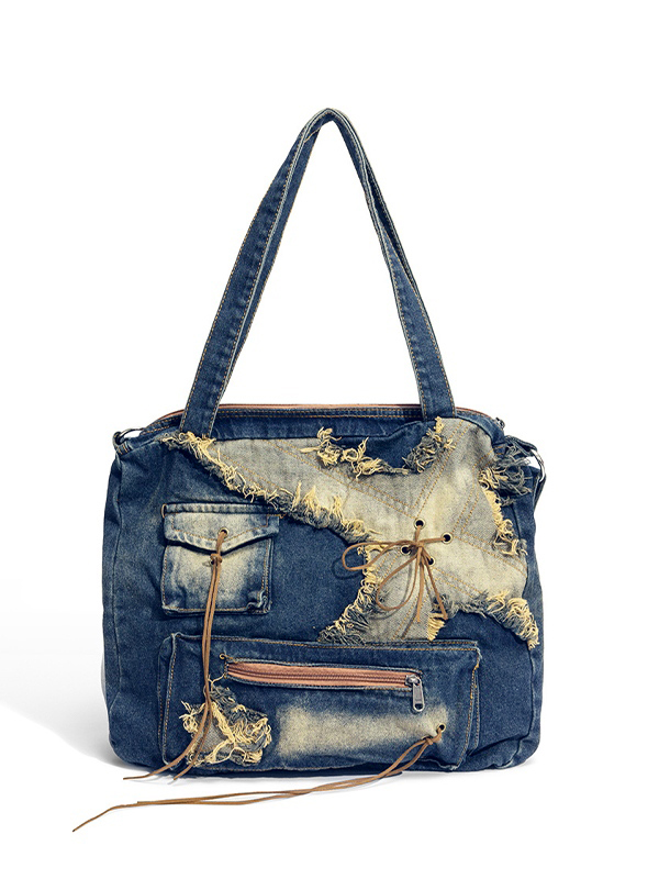 Vintage Distressed Raw Flap Zip Up Detail Shoulder Bag
