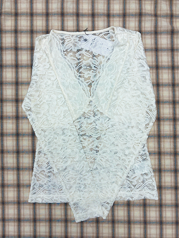 V Neck Long Sleeve Sheer Lace Blouse